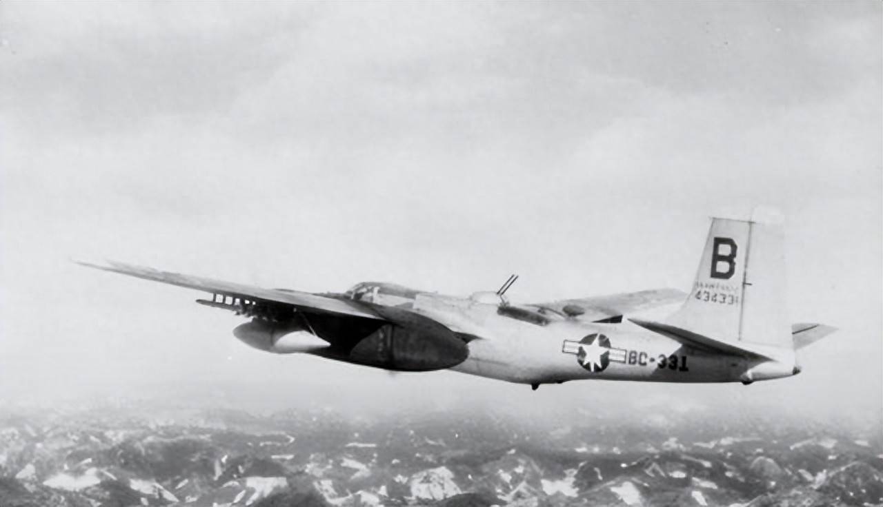 B-26轰炸机是美国空军在抗美援朝战争中的主要轰炸机之一,该机具有远程打击能力,能够携带大量炸弹和其他武器进行轰炸任务,在战争中,B-26轰炸机主要担负对地面目标进行轰炸的任务,对朝鲜和中国军队造成了很大的破坏,由于其在低空作战中的脆弱性,B-26轰炸机也遭受了较大的损失。