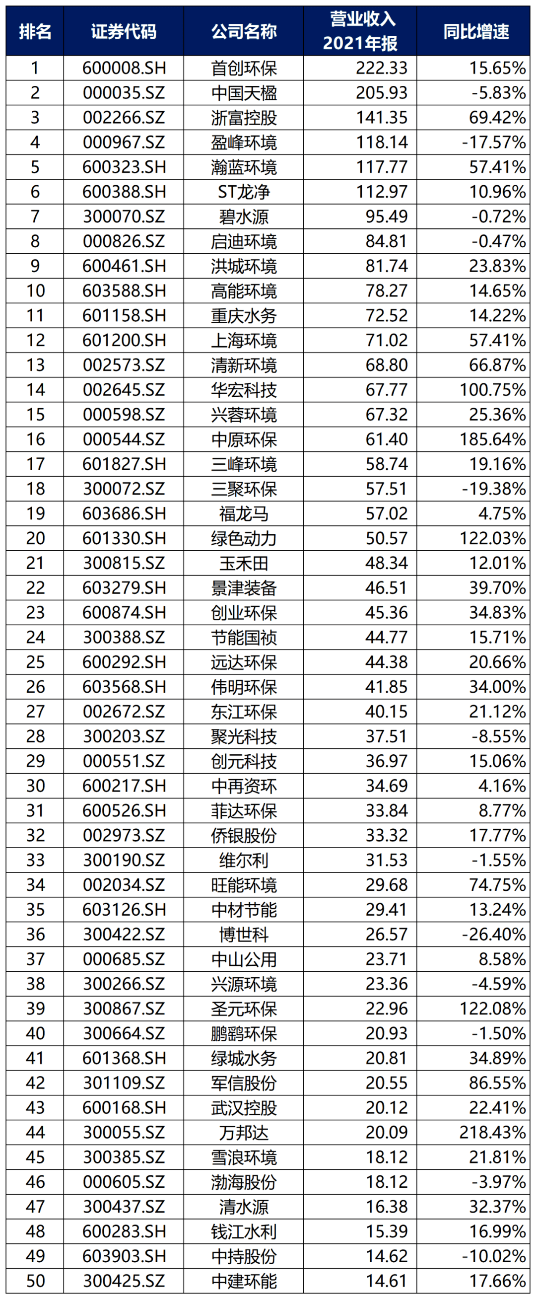 环保龙头股排名前十