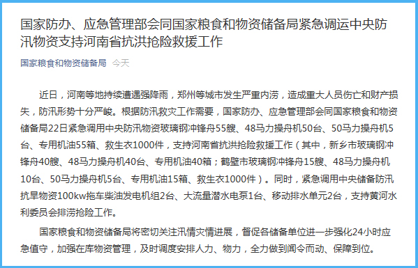 中央储备紧急物资的具体情况