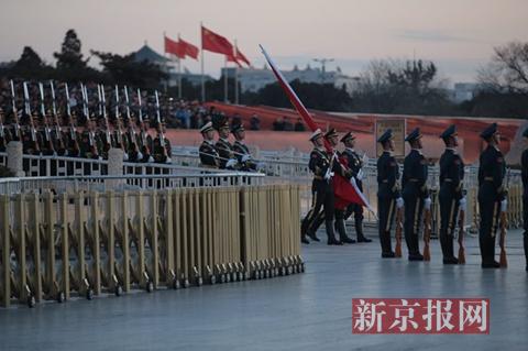 4、国歌奏响:伴随着国歌的奏响,五星红旗冉冉升起。