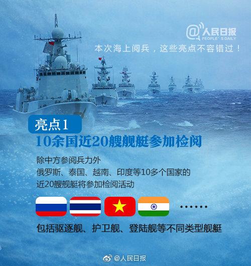 3、日本:日本作为亚洲重要国家,也派出了代表团参加阅舰式,中日两国在军事领域的交流有助于增进互信,促进地区和平稳定。