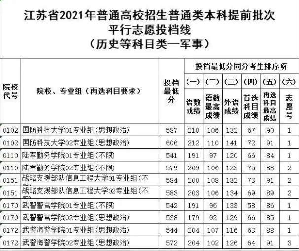 江苏地区军校分数线排名详解:本文介绍了江苏地区43所军校的分数线排名情况。通过收集和整理相关数据,对各个军校的录取门槛进行了详细解析。文章旨在帮助考生和家长了解不同军校的录取标准,为填报志愿提供参考依据。摘要字数控制在约150字以内。