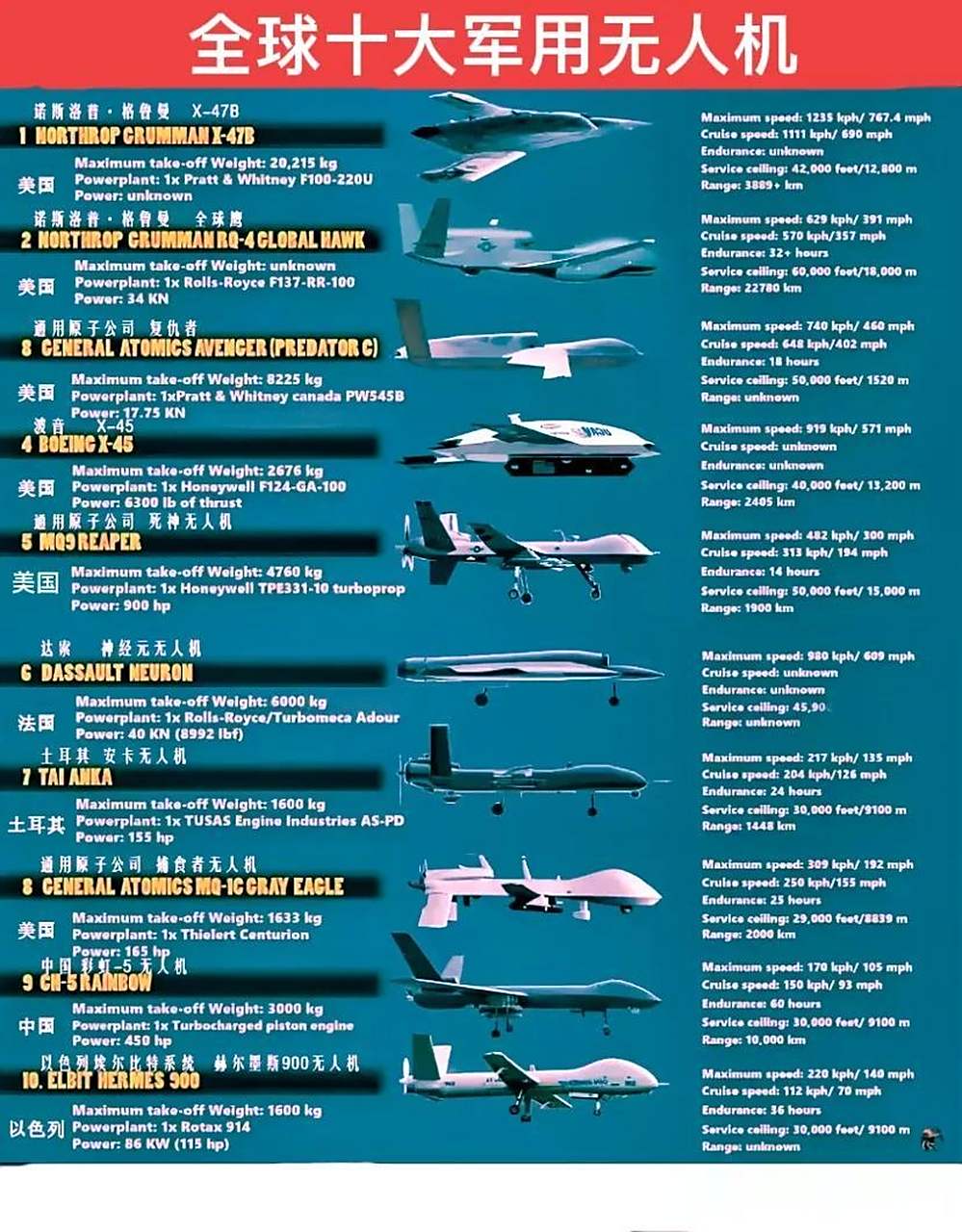 摘要:世界公认的十大无人机代表了无人机技术的尖端发展。这些无人机融合了最先进的科技,引领着无人机革命的发展。它们不仅在军事领域展现出色,也在民用领域如航拍、农业、救援等方面发挥巨大作用。这些无人机的技术水平和应用前景令人瞩目,展示了无人机行业的无限潜力和未来趋势。