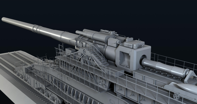 从前视图看,古斯塔夫巨炮呈现出一幅壮观的景象,庞大的炮身,犹如一条巨龙蜿蜒盘踞,炮口处,粗大的炮膛彰显出它的威力,炮身上刻有精美的纹饰,体现了当时工匠们的精湛技艺,巨大的轮子,使得这款巨炮具备了良好的机动性,在前视图中,我们可以感受到古斯塔夫巨炮的雄伟与壮观。