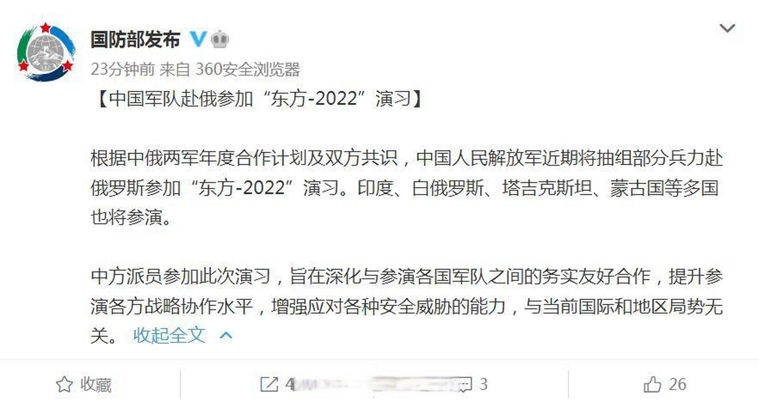 展望未来,中方将继续积极参与中俄军演,加强与俄罗斯的军事合作,随着两国军事合作的不断深化,双方将在更多领域展开合作,共同研发先进的武器装备和技术,中方还将进一步提高军队实战能力,为维护国家安全和利益提供更强的保障,相信在中俄两国的共同努力下,两国关系将更加牢固,为世界和平与稳定作出更大的贡献。