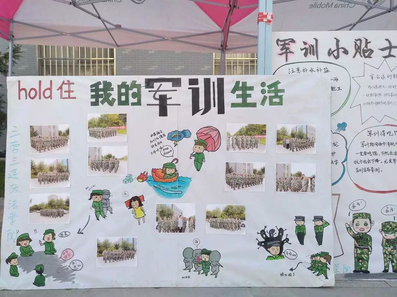 第五格展现的是学生们的集体生活,同吃同住,相互照顾,他们学会了团结和协作,在军训的日子里,他们共同经历了风风雨雨,收获了深厚的友情。