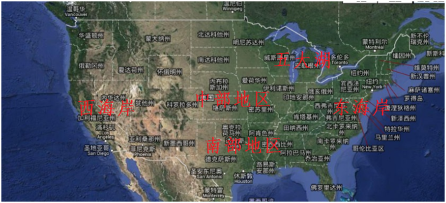 美国西部主要包括加利福尼亚州、德克萨斯州、亚利桑那州等州份,这一地区地形多样,有广阔的沙漠、高山和海岸线,加利福尼亚州以其丰富的自然资源和多元化的地理景观著称。
