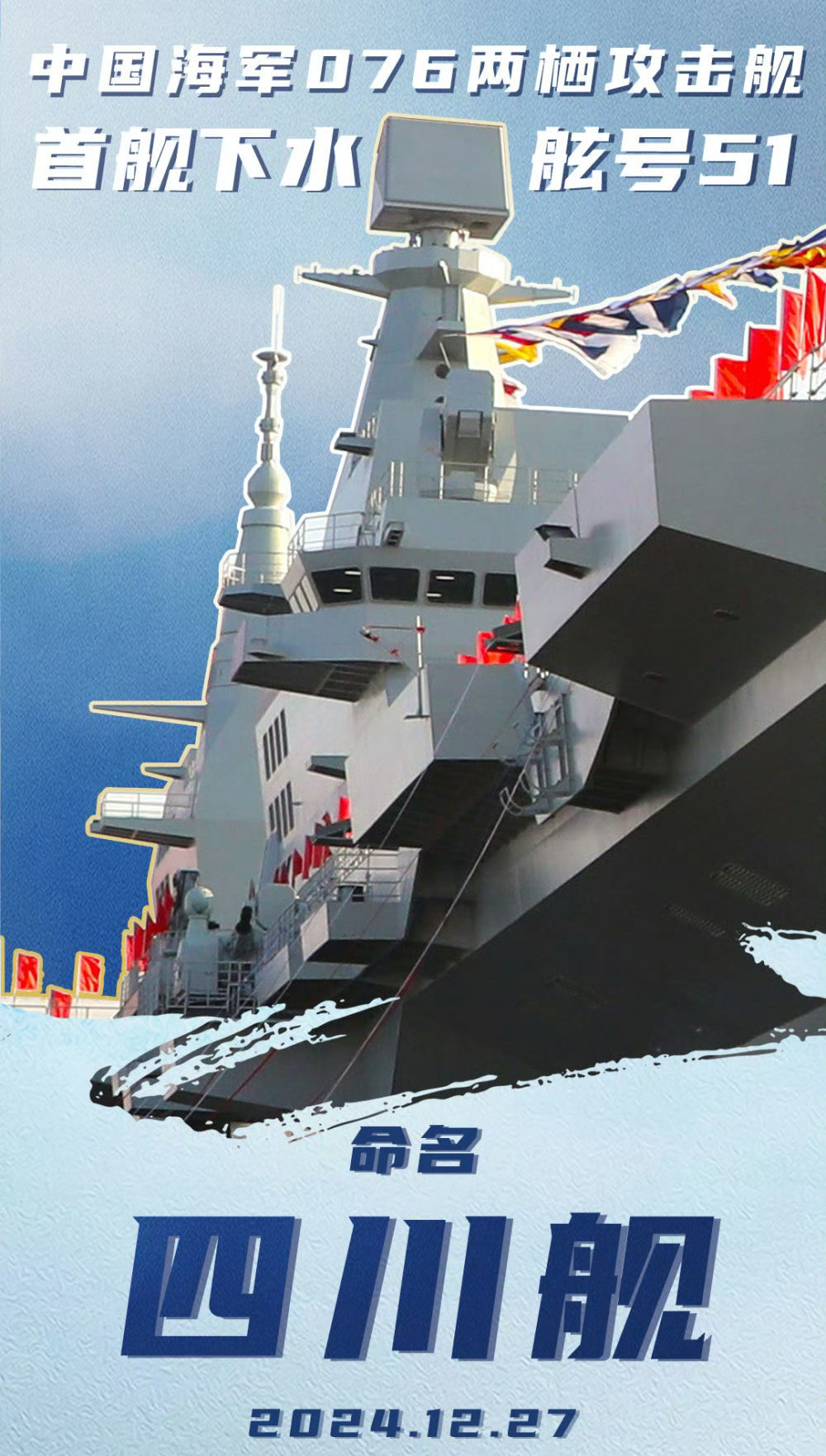 中国海军新舰下水,迈向深蓝海域,展现大国力量。这一重要事件标志着中国海军实力的进一步提升,彰显了国家在海洋领域的雄心壮志。新舰的下水将加强中国海军的作战能力,维护国家海洋权益,同时也展示了中国在科技、制造业等领域的实力。这一进展对于维护国家安全和地区稳定具有重要意义。