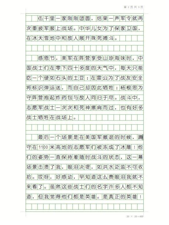 电影中的长津湖战役,是抗美援朝战争中的一场重要战役,在这场战役中,我军面对强大的敌人,展现出了顽强的战斗意志和英勇的斗志,电影中的战斗场面,让我感受到了战士们的勇敢和坚韧,他们不怕牺牲,敢于胜利,为了民族的尊严和国家的安全,他们奋勇向前。
