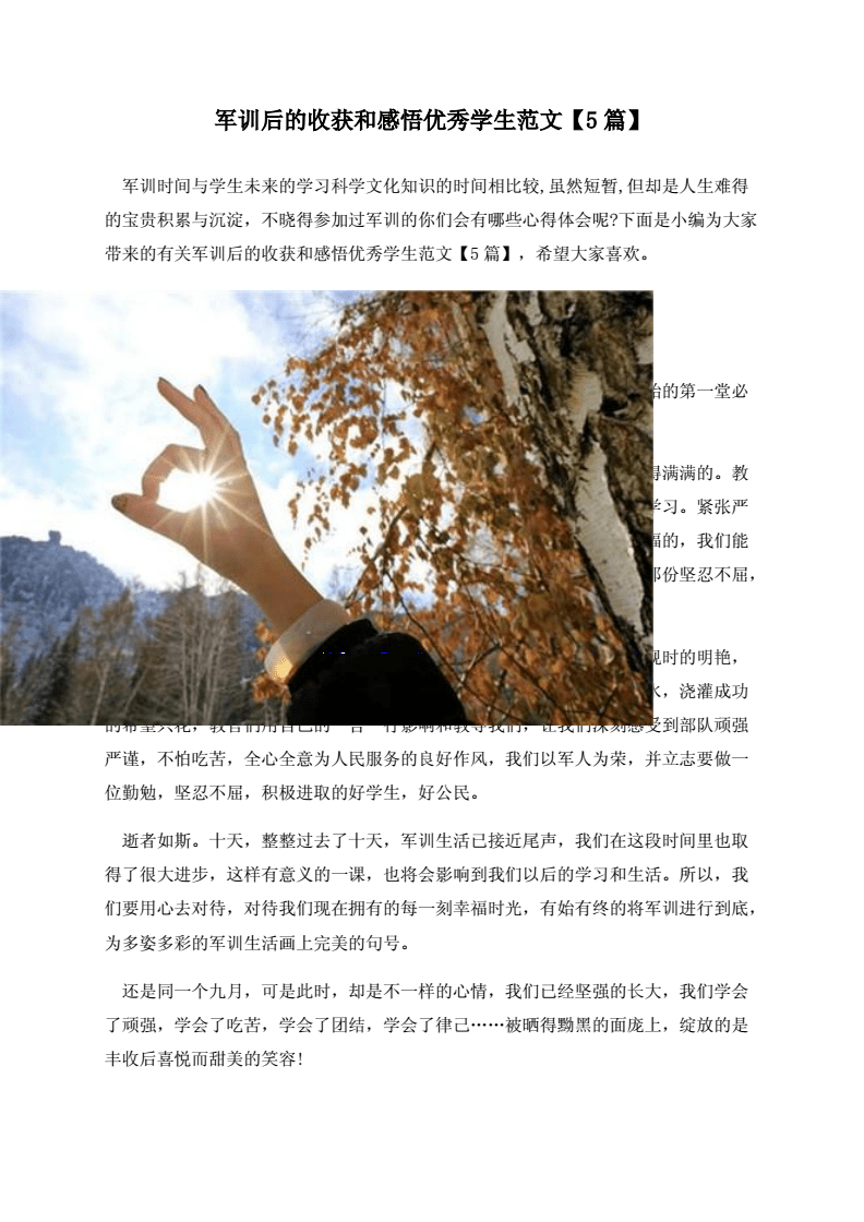 我有幸参加了集团组织的军训活动,这次军训不仅是一次团队协作能力的锻炼,更是一次心灵的洗礼,通过此次军训,我深刻感受到了团队合作的重要性,也认识到了自身的不足和需要改进的地方,在此,我想分享一下我在集团军训后的收获和感悟。