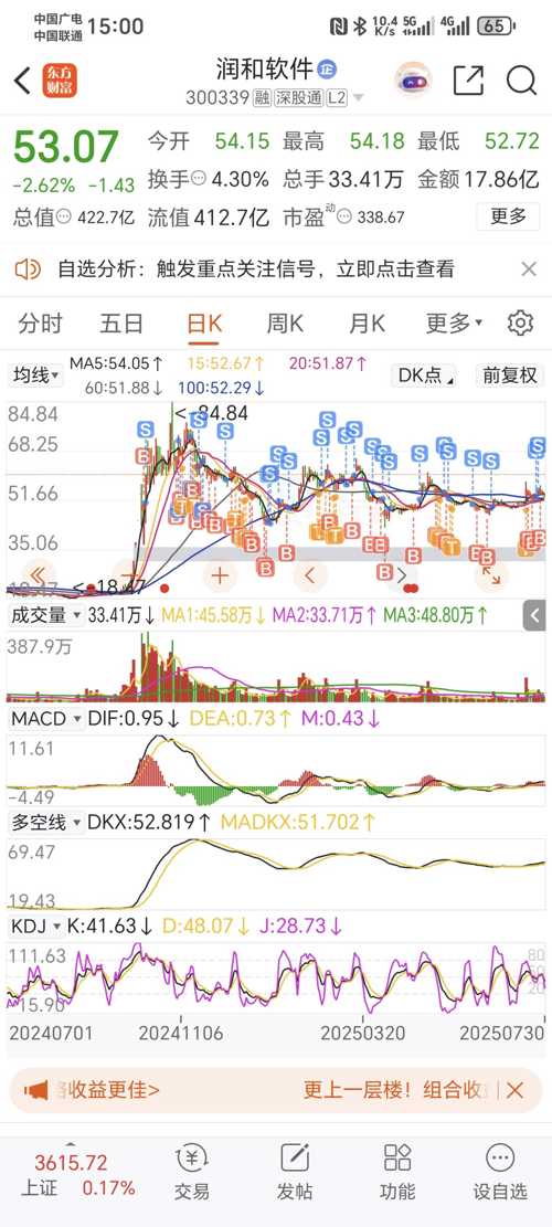 2、稳健的业绩表现:润和软件的业绩一直保持着稳健的增长态势,盈利能力较强,为股价的提升提供了有力的支撑。